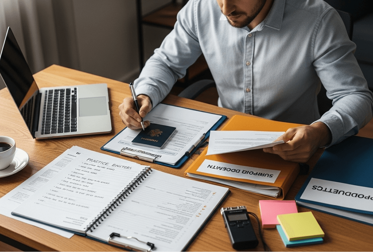 Ai-powered practice combined with visa expert coaching—pressure-tested scenarios until confident responses become automatic.